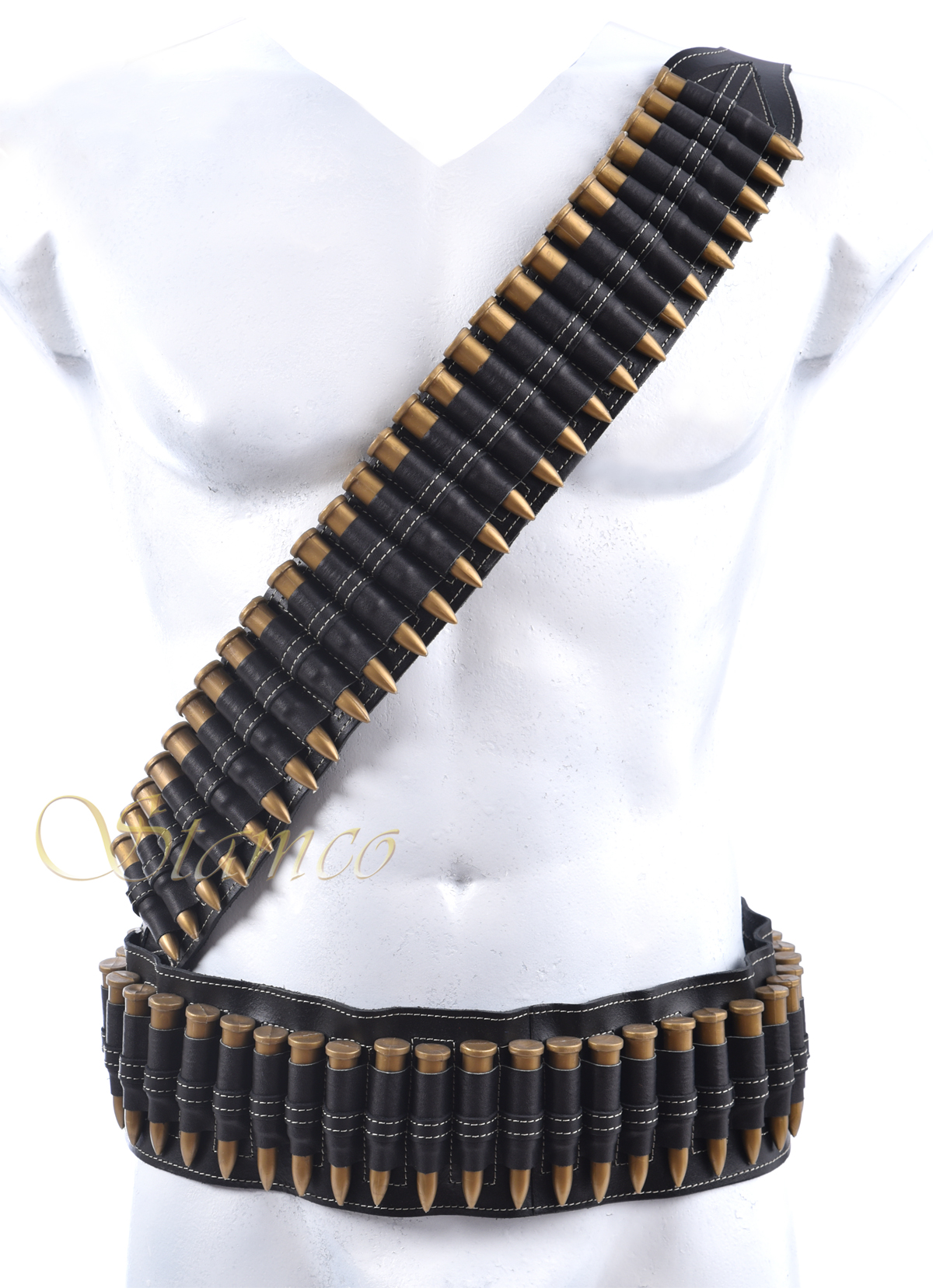 Leather belt with plastic bullets (cartridges) and a special knife case.