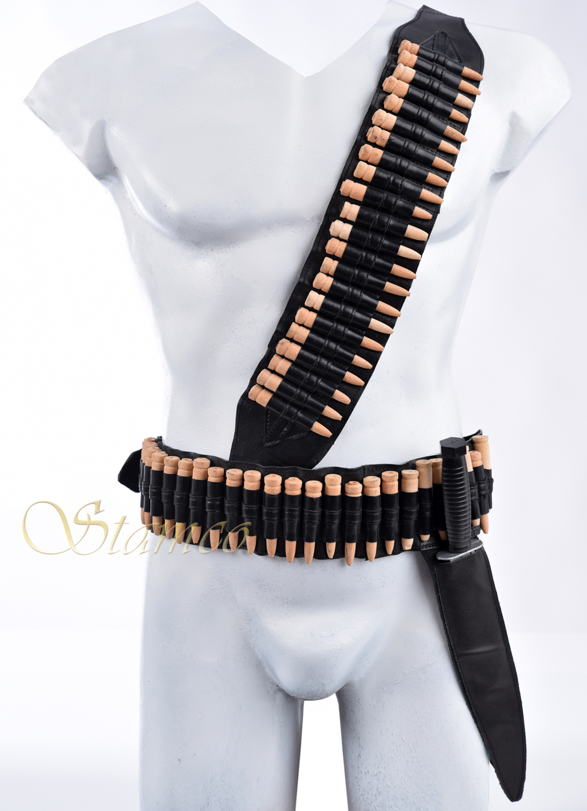 Leather belt with wooden bullets (cartridges) and a special knife case.